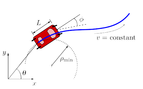 In order to obtain the trajectory, we would have to solve the optimization problem. For this problem, we will be using a dubin vehicle dynamics. The kinematics of the dubin vehicle is shown as follows: