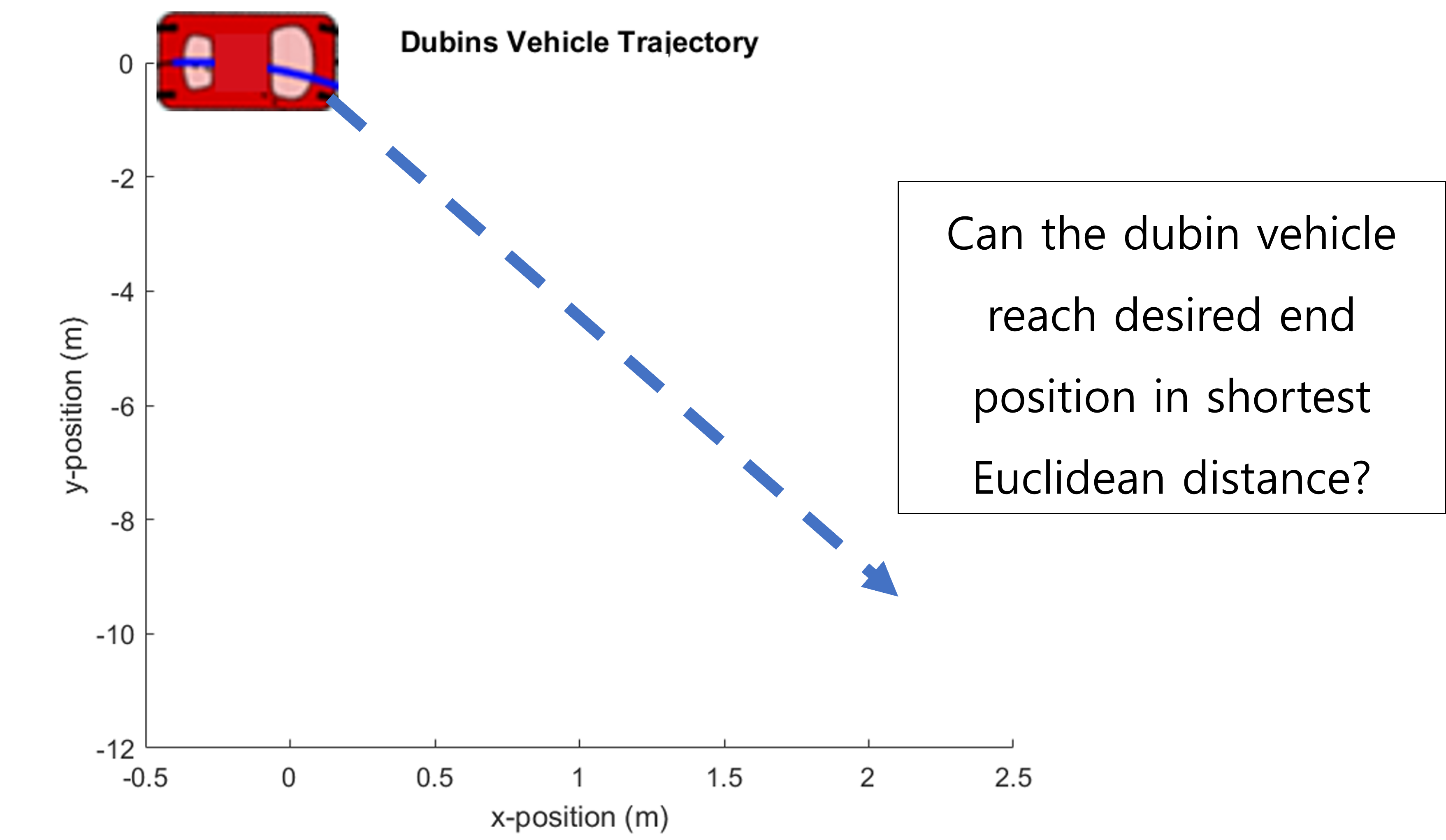 Can a robot, for example, a dubin vehicle, as shown in Figure 1, reach a desired end position by traveling in a straight line?